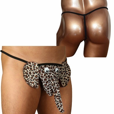 ハロウィンにも最適!豹柄のゾウが逞しさを強調するおもしろ系メンズ用Tバック。男性の象徴に象の顔!勝負の夜はちょっぴりユニークにアピールしてみて♪